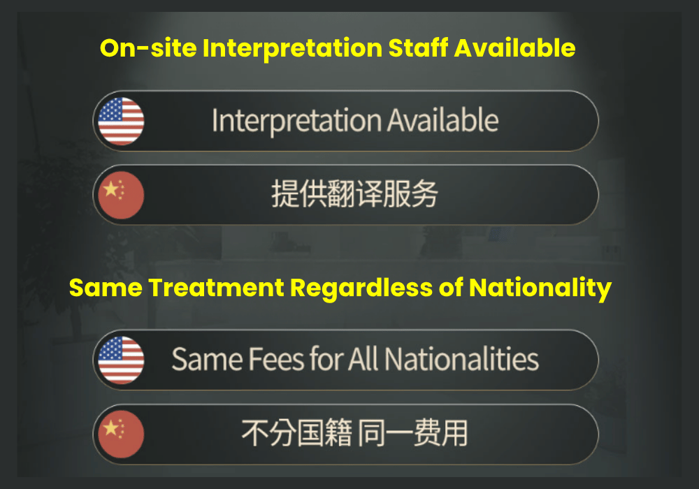 Our staff and dermatologists communicate fluently in English for your comfort and clarity.